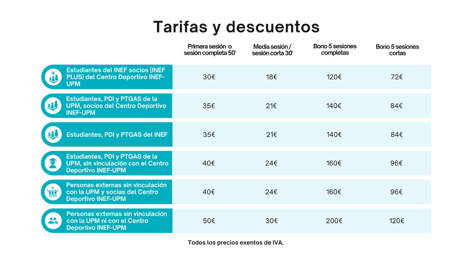 El Gabinete de Fisioterapia del Centro Deportivo INEF-UPM nace con el objetivo de ofrecer un servicio de calidad a los abonados del Centro Deportivo, a la comunidad universitaria y al público en general.